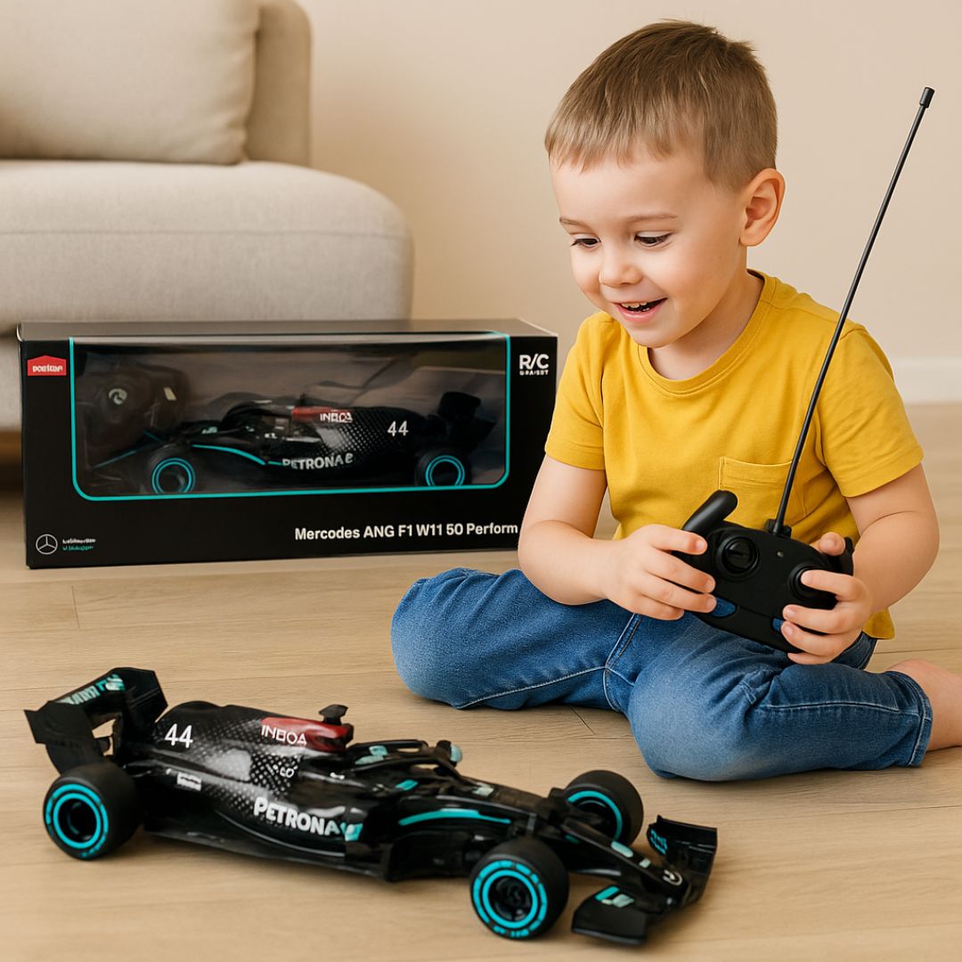 Sa modelom Mercedes-AMG F1 W11 EQ Performance,   1:18 , tvoj mali vozač ne dobija samo igračku — već doživljaj pravog trkačkog uzbuđenja!