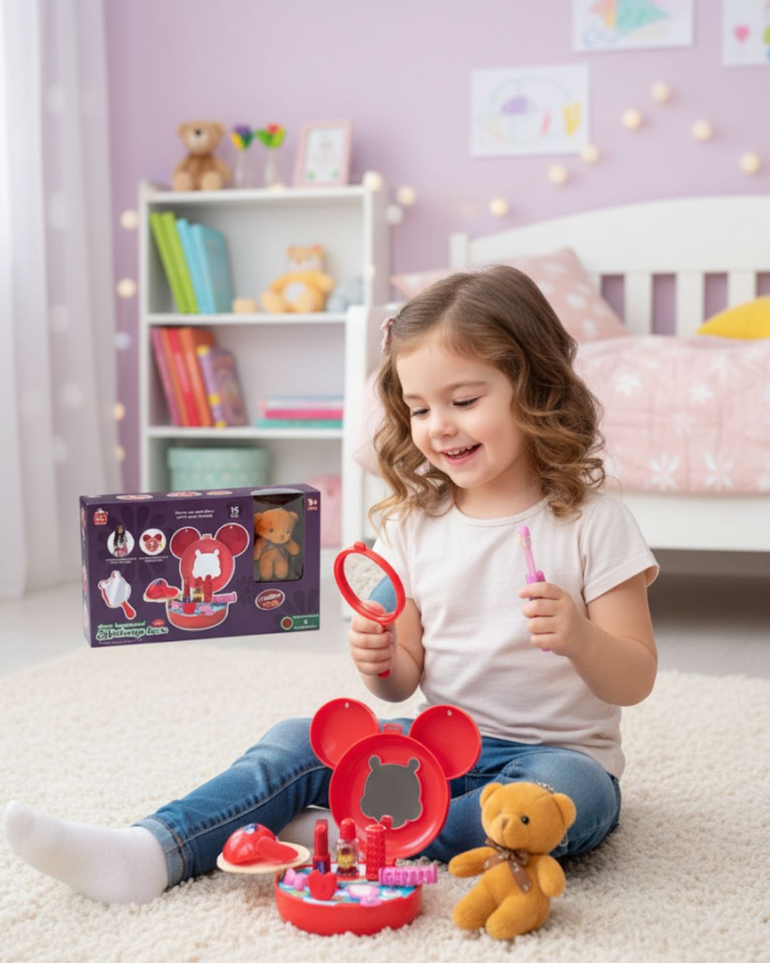 Za decu 3+ godine, ovaj set nudi bezbroj sati kreativne igre – od igranja sa četkicama, karminima, do sitnih modnih dodataka. Plus, tu je i preslatki plišani meda koji čeka da postane njihov novi najbolji prijatelj