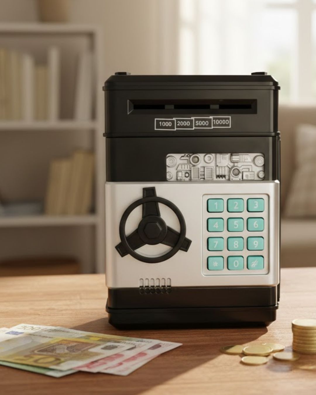Sef kasica uči važnost štednje dok se zabavljate sa novcem, podučava životnim veštinama i upravljanju novcem u detinjstvu, neguje naviku štednje.