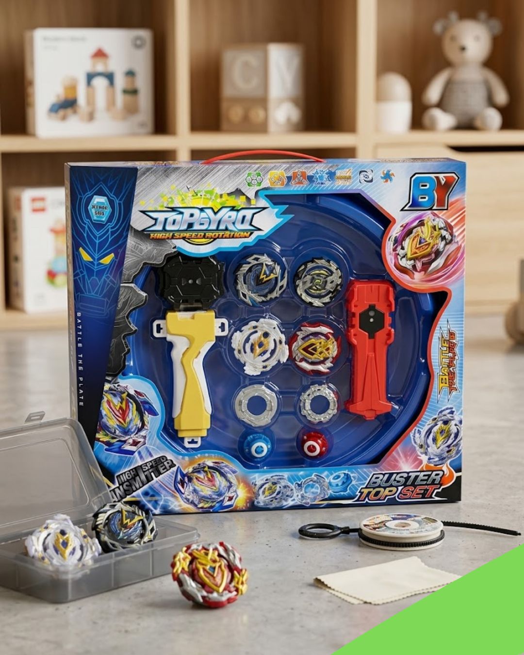 Set sadrži dve čigre i lanser, spremne za spektakularne duele!